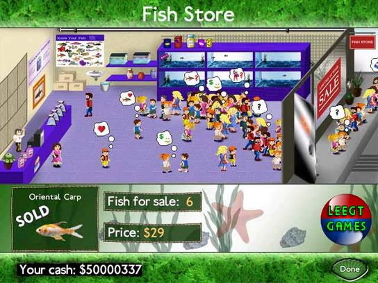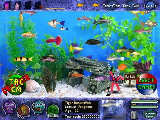 Breed beautiful and exotic fish in this unique aquarium-sim puzzler. These are your fish and like real fish, you need to care for them. You can feed them, cure them if they get sick and make lots of babies! The game runs in true real time: new surprises every time you check back into your game. Buy supplies, ornaments and special chemicals for your virtual tank. Over 400 different species of fish to discover! Can you find the 7 Magic Fish?
